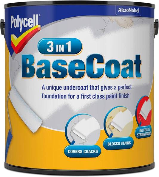 Polycell 3 in 1 Basecoat Undercoat | Covers Cracks & Stains | 2.5 Litre