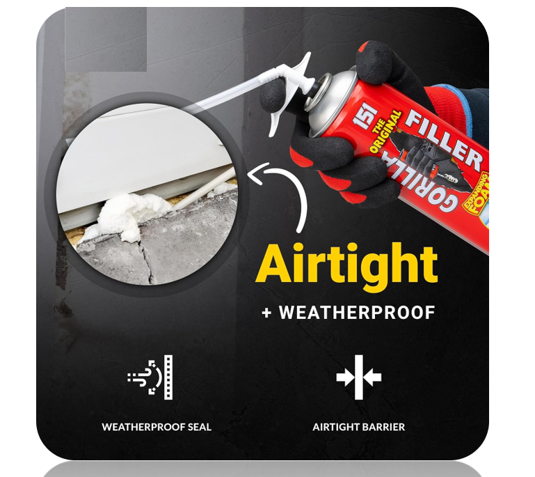 151 Gorilla Filler is the ideal solution to large cracks and holes in stone, wood, brick and metal. It expands on contact to fill any shaped gap and hardens to form an airtight weatherproof seal. Can be cut, sawn, painted or sanded.