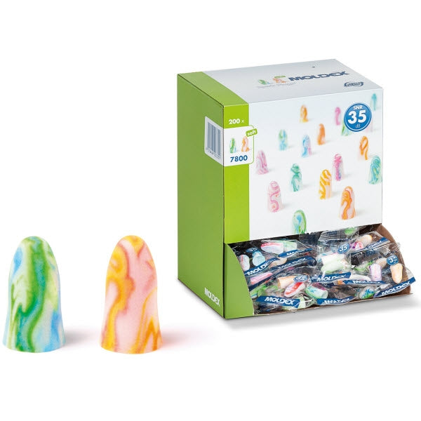 Made of a comfortable PU foam, Moldex Disposable Ear Plugs fit the unique shape of your ear canal in order to protect against long-term exposure. Colourful and appealing, a pack contains 50 pairs and a box contains 200 pairs so your whole workplace will have hearing protection when they need it.