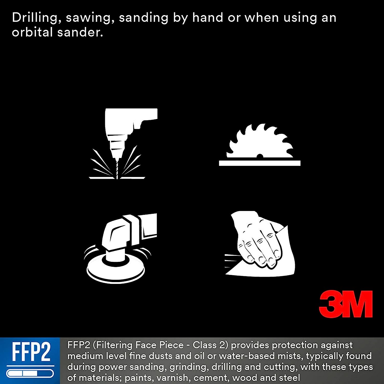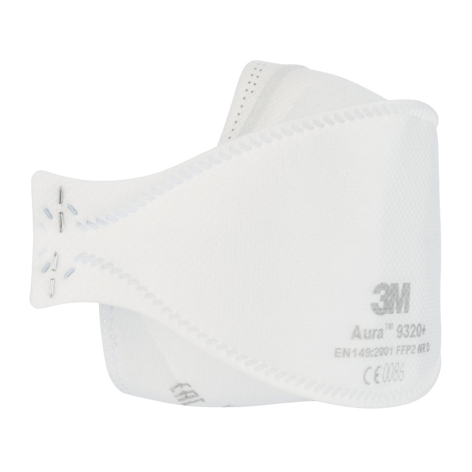 The advanced three-panel design and low breathing resistance filter technology applied to the 3M Aura 9300+ series provides optimum comfort and easy communication, thus ensuring improved wearer acceptance even during long working hours. Being foldable they offer you more convenience than traditional cup shaped respirators. Its features include an embossed and sculpted top panel for improved compatibility with reduced fogging of eyewear and an innovative chin tab to improve the ease of fitting. Provides respiratory protection against moderate levels of fine dusts and mists.