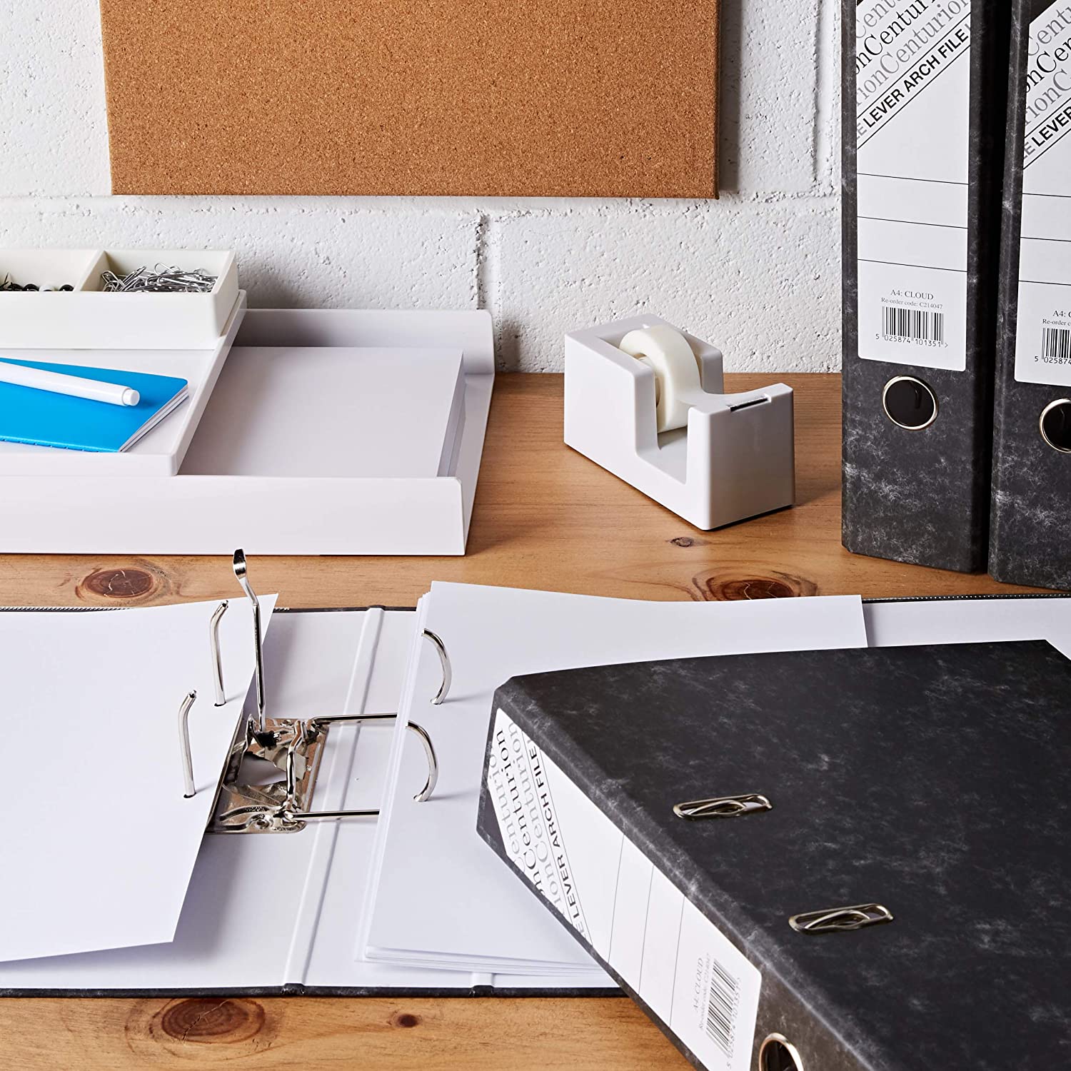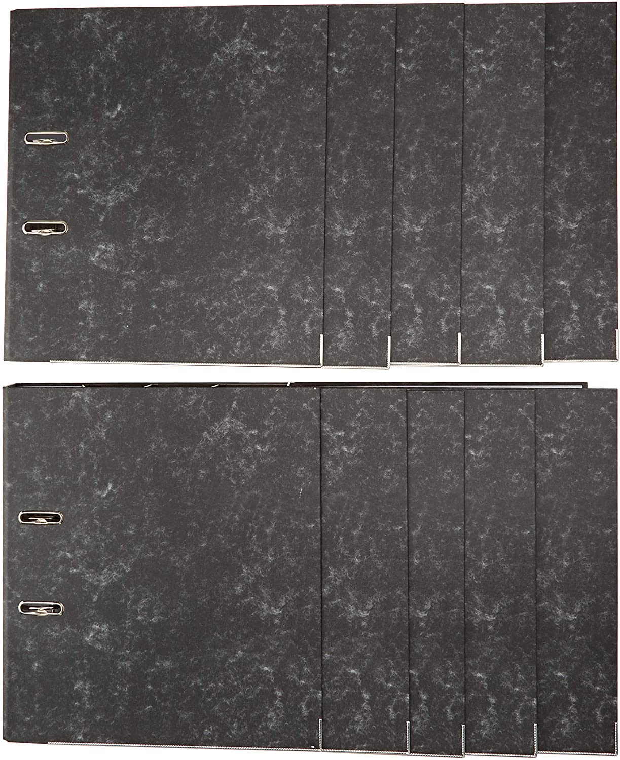 Lever arch files with a cloud effect paper covering over a high quality board. Metal finger pull lining and reinforced bottom edge provide added durability. Slotted covers provide added file stability when in use. Supplied complete with compressor bar. Spine label for easy identification of contents
