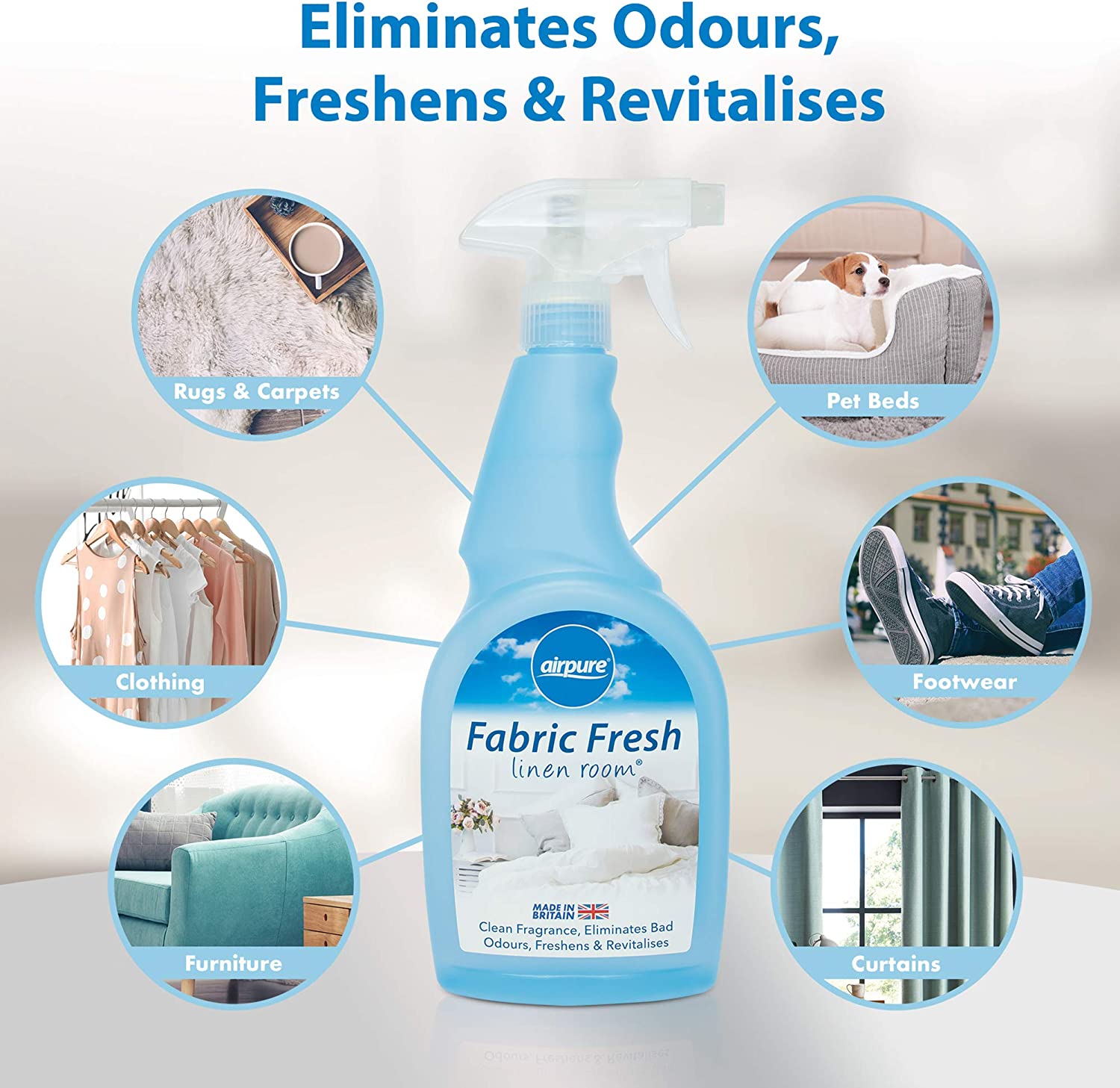Airpure Fabric Freshener eliminates bad odours and leaves a crisp, fresh fragrance to revitalise your home surroundings. Crisp, fresh fragrance which eliminates bad odours.