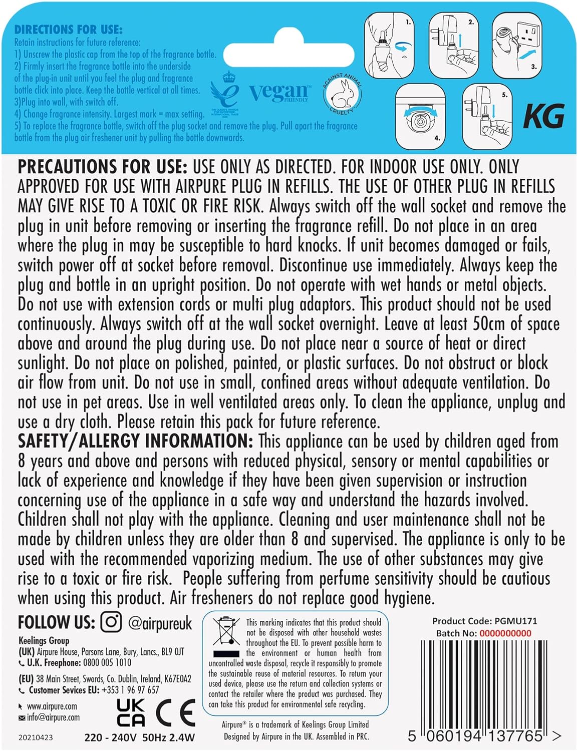 Airpure Plug-In Moments Unit continuously diffuses your favourite fragrance around your home and you can adjust the intensity to suit your needs.