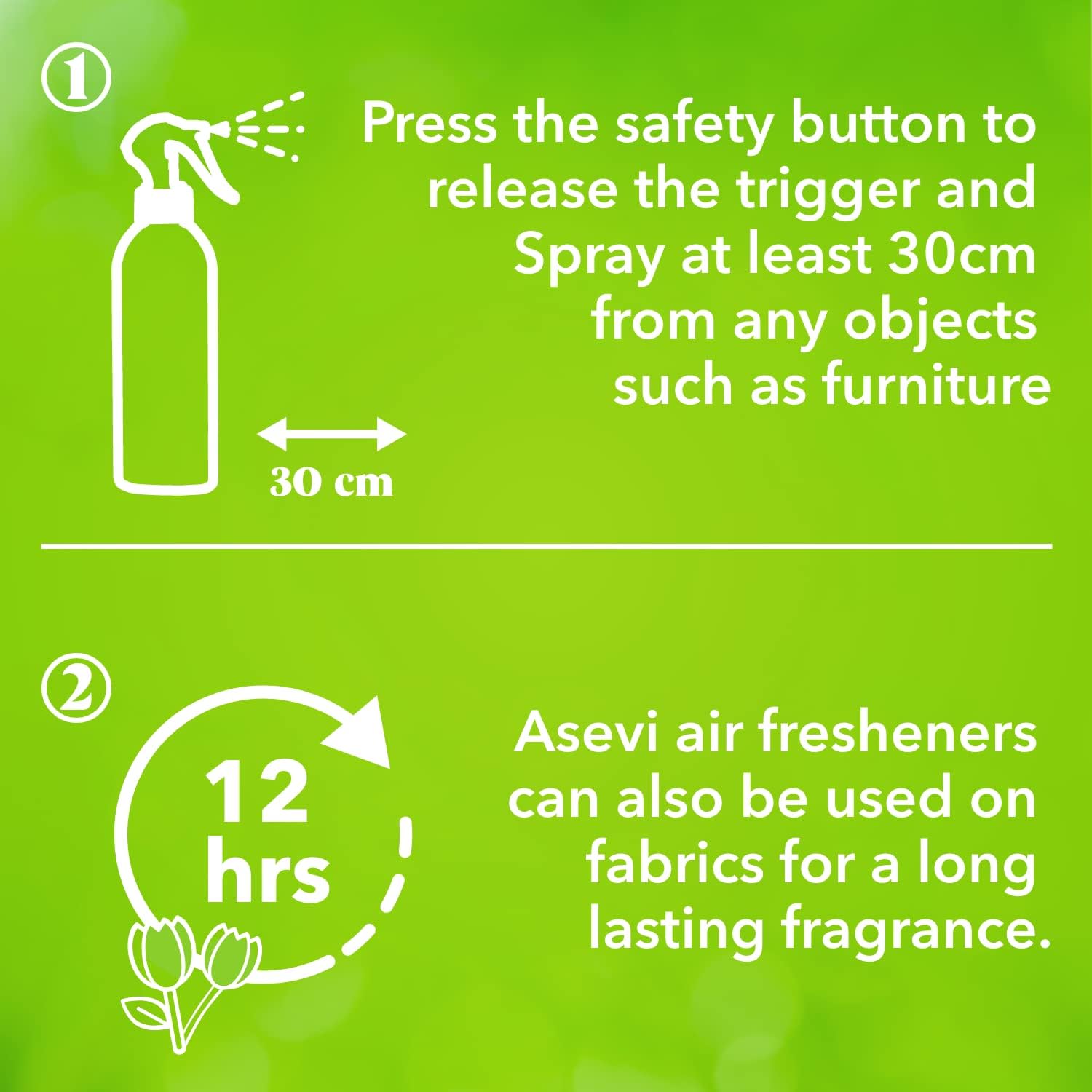 - Refreshes Fabrics: Asevi air fresheners are perfect for giving fabrics in your home a boost of fragrance that lasts up to 12 hours