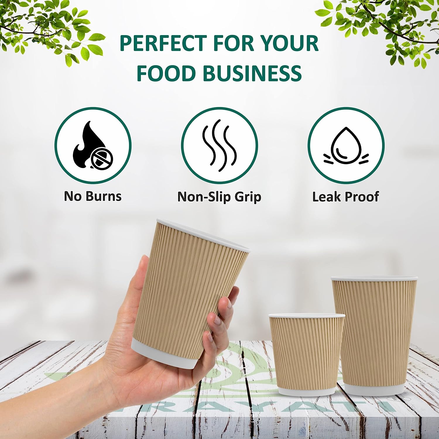 12oz paper take out cups with a corrugated outer paper coating providing insulation from the hot contents. This additional protective layer eliminates the need for coffee clutches or double cupping. Manufactured from premium food grade cup stock, triple walled paper.
