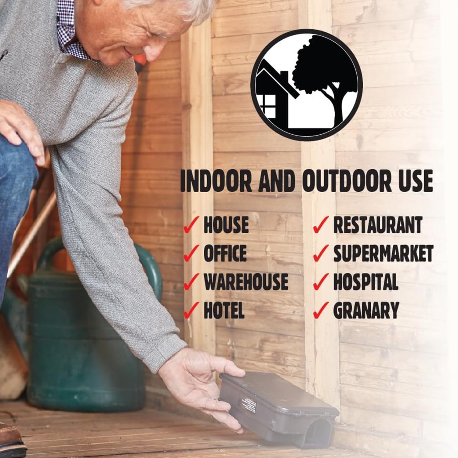 - Protects children and pets from contact with bait