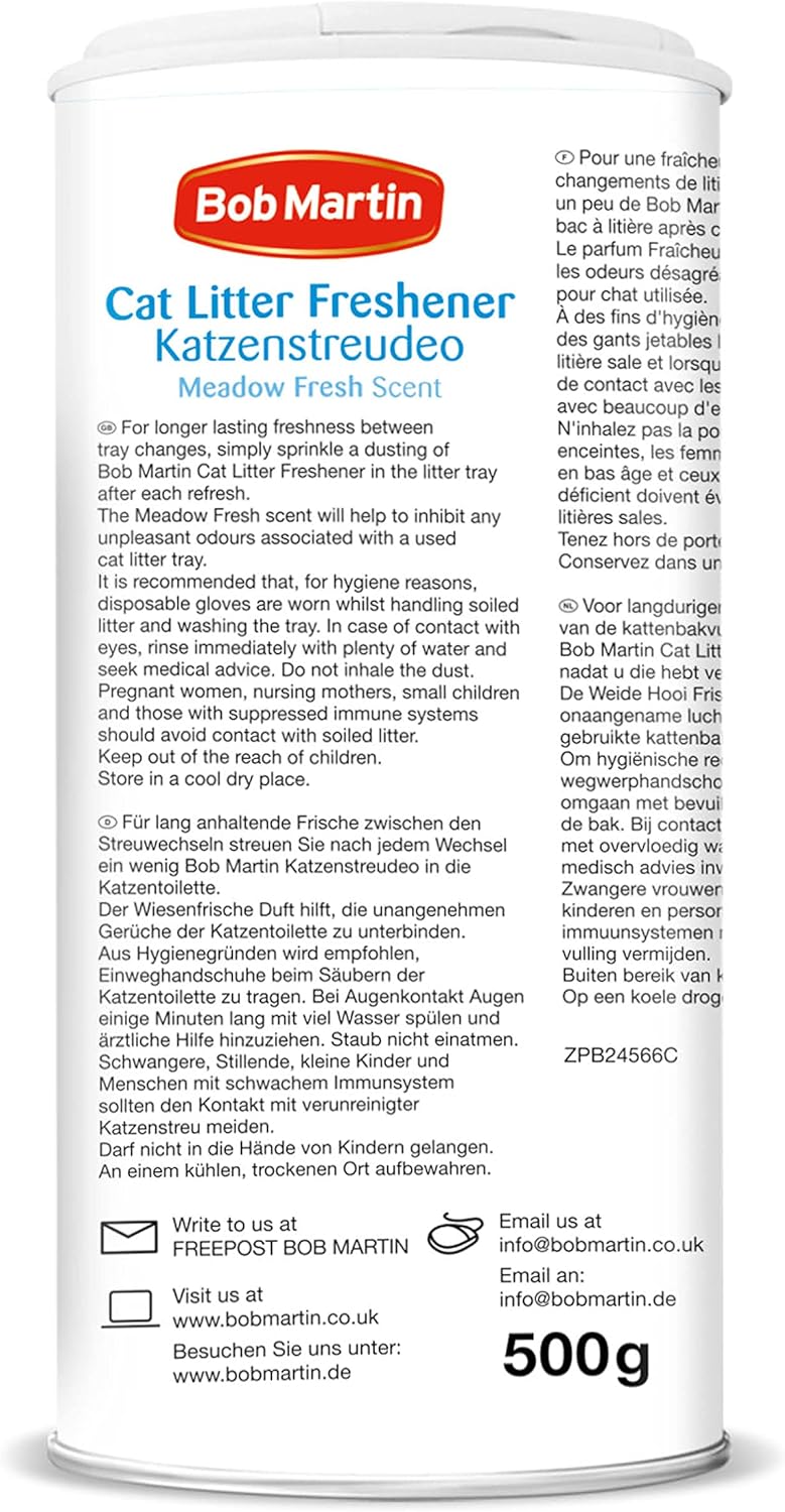 Bob Martin Cat Litter Freshener Powder, Meadow Fresh Scent 500g | 4 Pack Bundle