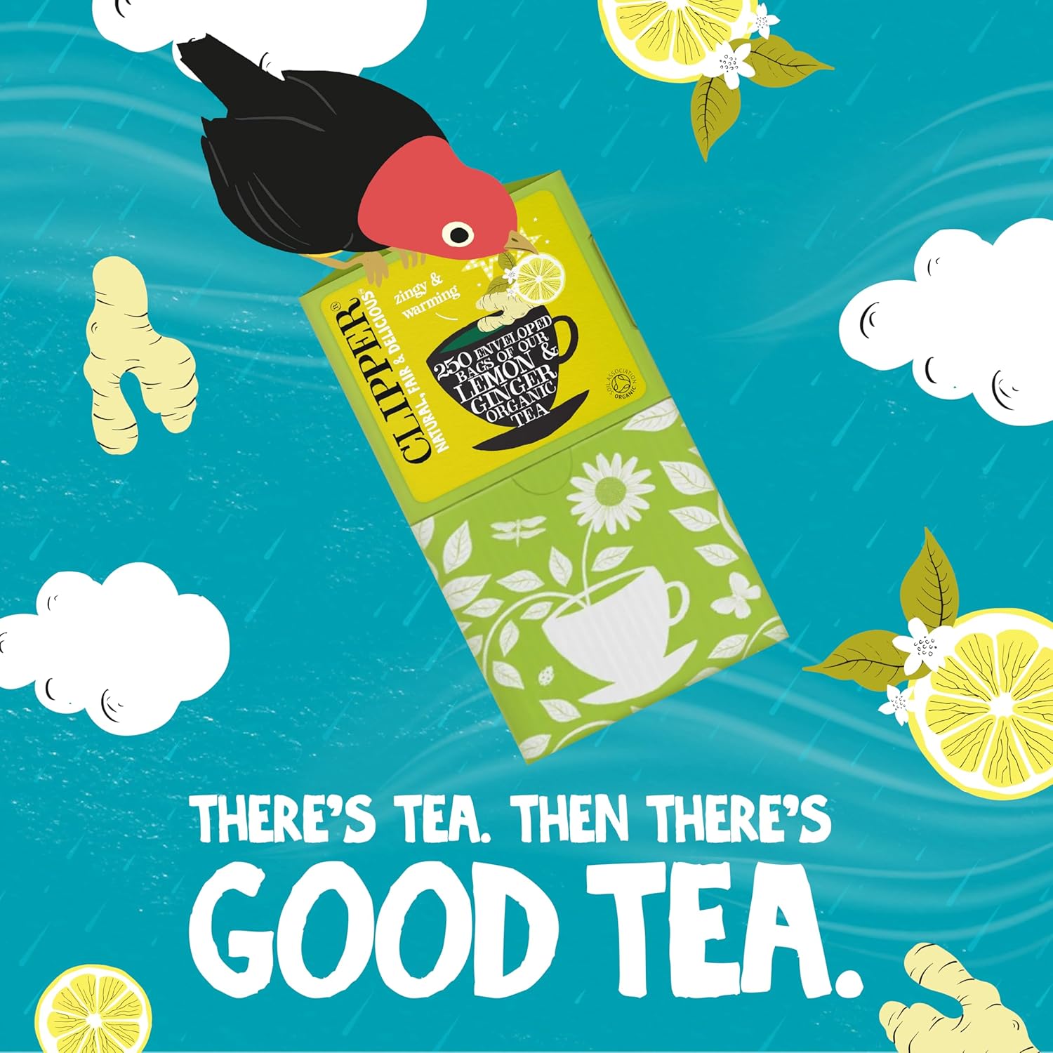 Clipper Organic Lemon & Ginger Tea Bags | 250 Individually Wrapped Teabags | Bulk Buy, Home & Catering | Caffeine-Free Herbal Tea Bags | Eco-Conscious, Natural, Unbleached & Biodegradable