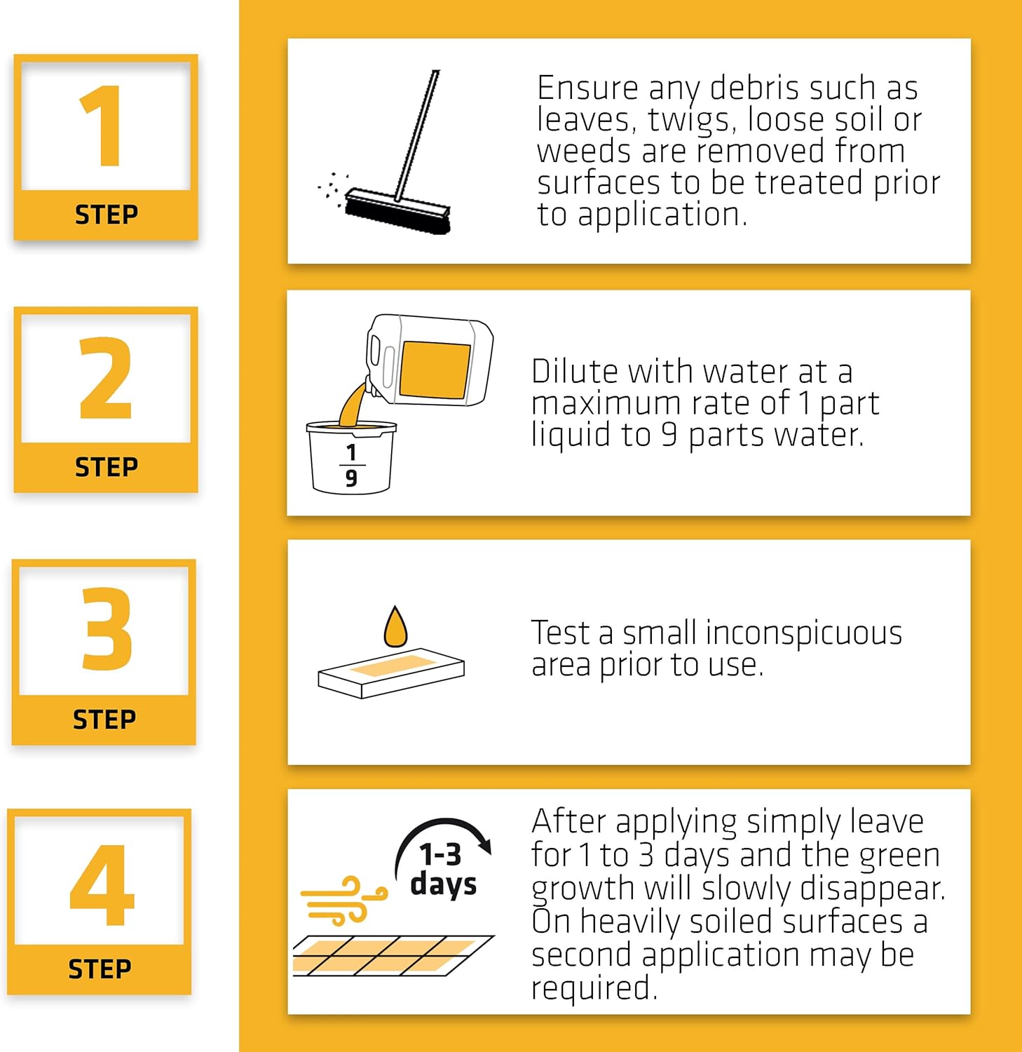 EVERBUILD PATIO WIZARD® is a new type of Mould and Algae treatment that kills and cleans all type of green growth without the need for any washing off, scrubbing or pressure washing. Totally safe and non-hazardous to children and pets, once dry EVERBUILD PATIO WIZARD® is made from biodegradable ingredients and does not include any bleach or acid contents.