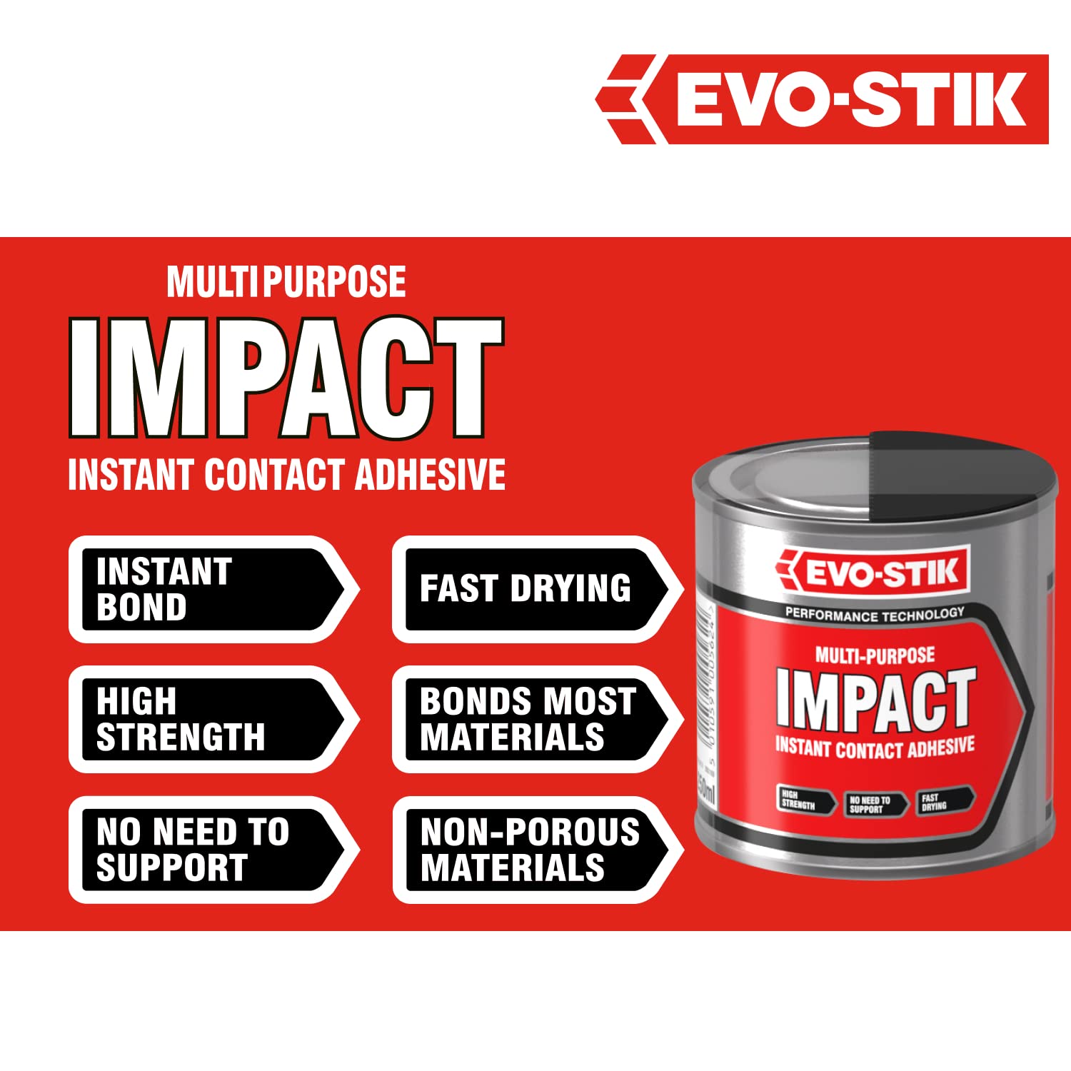- Contents: 1x EVO-STIK Impact Adhesive, 250ml Tin