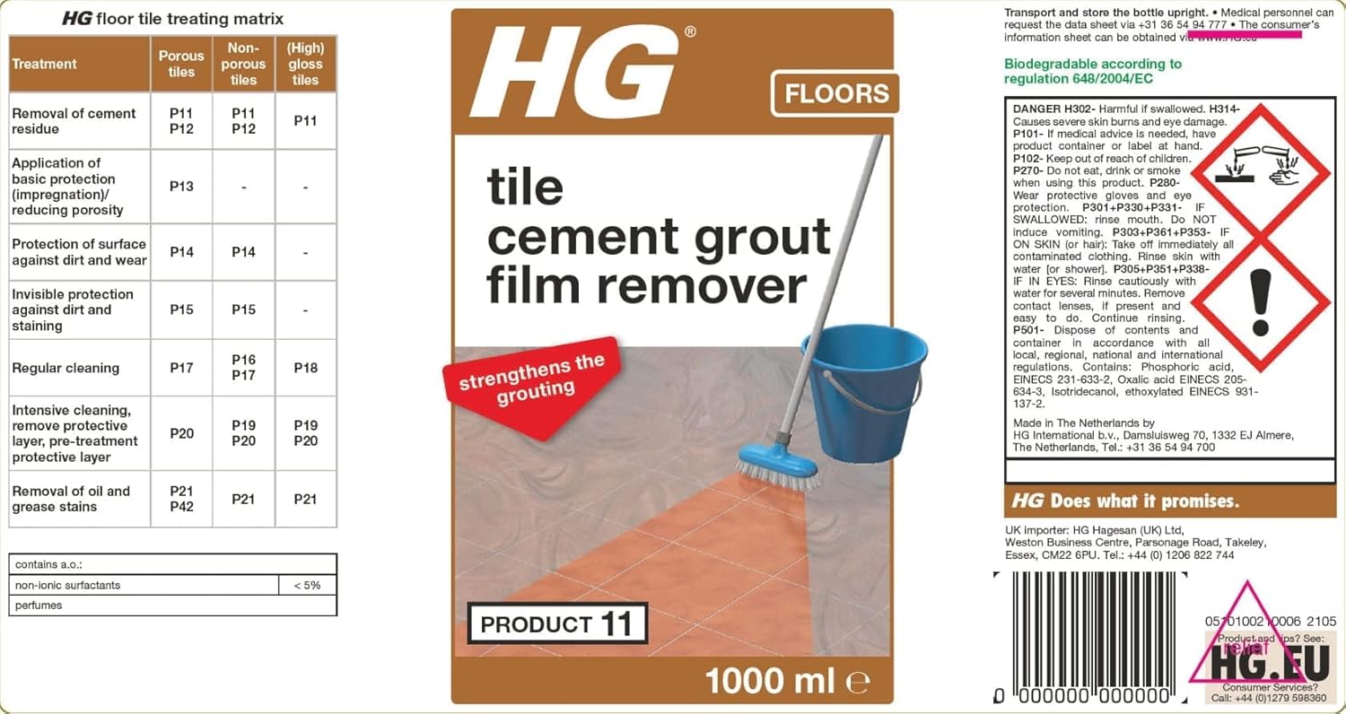 - 1 x HG Cement Grout Remover, 1L. Discover the full range of HG cleaning products, from HG drain unblocker to limescale remover, mould remover, multi surface cleaners and all purpose cleaner sprays