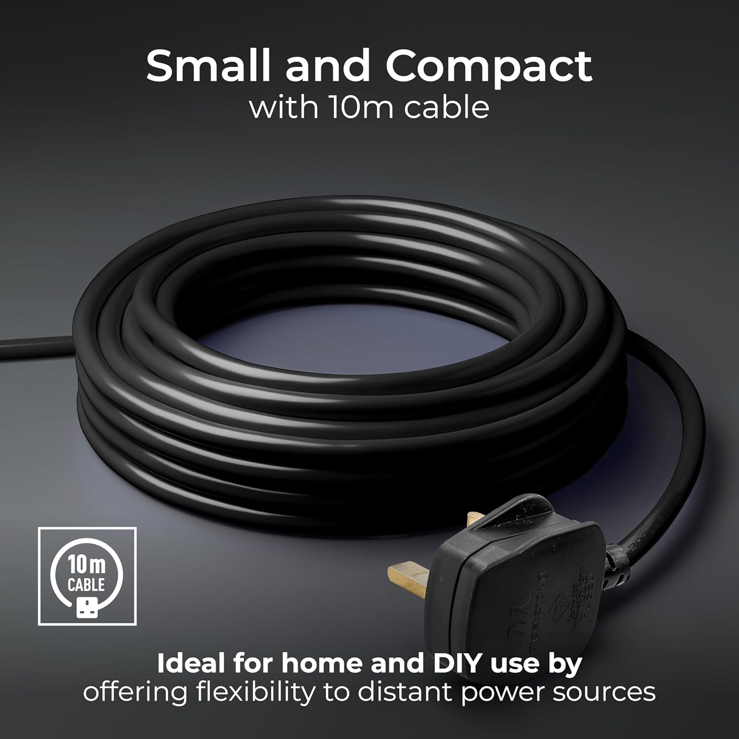 - FOR JOBS AROUND THE HOUSE OR OFFICE: With ten metres of cable, the lightweight extension reel is perfect when you require a long cable extension lead