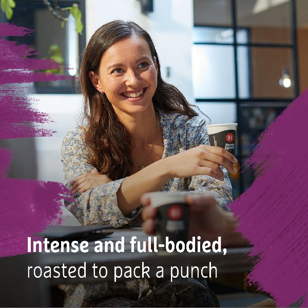 "Experience the taste and aromas of Douwe Egberts Barista Editions. The Rich Dark Roast Espresso Coffee Beans are selected from 100% Rainforest Alliance Certified Arabica coffee beans from South America. The full-bodied blend is dark roasted and has notes of sticky treacle and almonds. The carefully selected coffee beans delivers a fullbodied and intense flavour, which makes it the perfect cup of coffee. Douwe Egberts Barista Editions Rich Espresso Beans are ideal for a straight espresso or traditional coffee shop favourites cappuccino or a flat white. Easy to use with professional coffee machines.