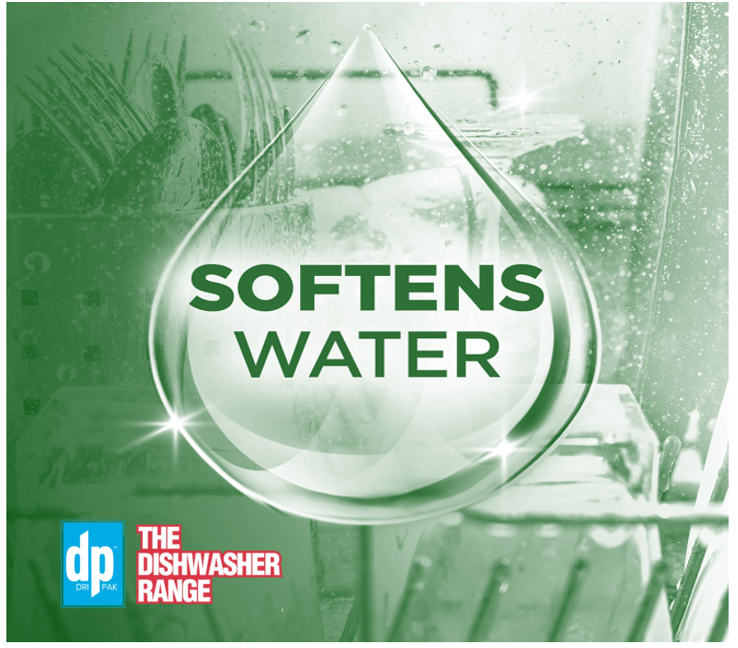 Replenishes built-in water softeners in dishwashers, ensuring the machine gives you the best possible results. This helps to keep the dishwasher clean and in turn your dishes come out sparkling again.