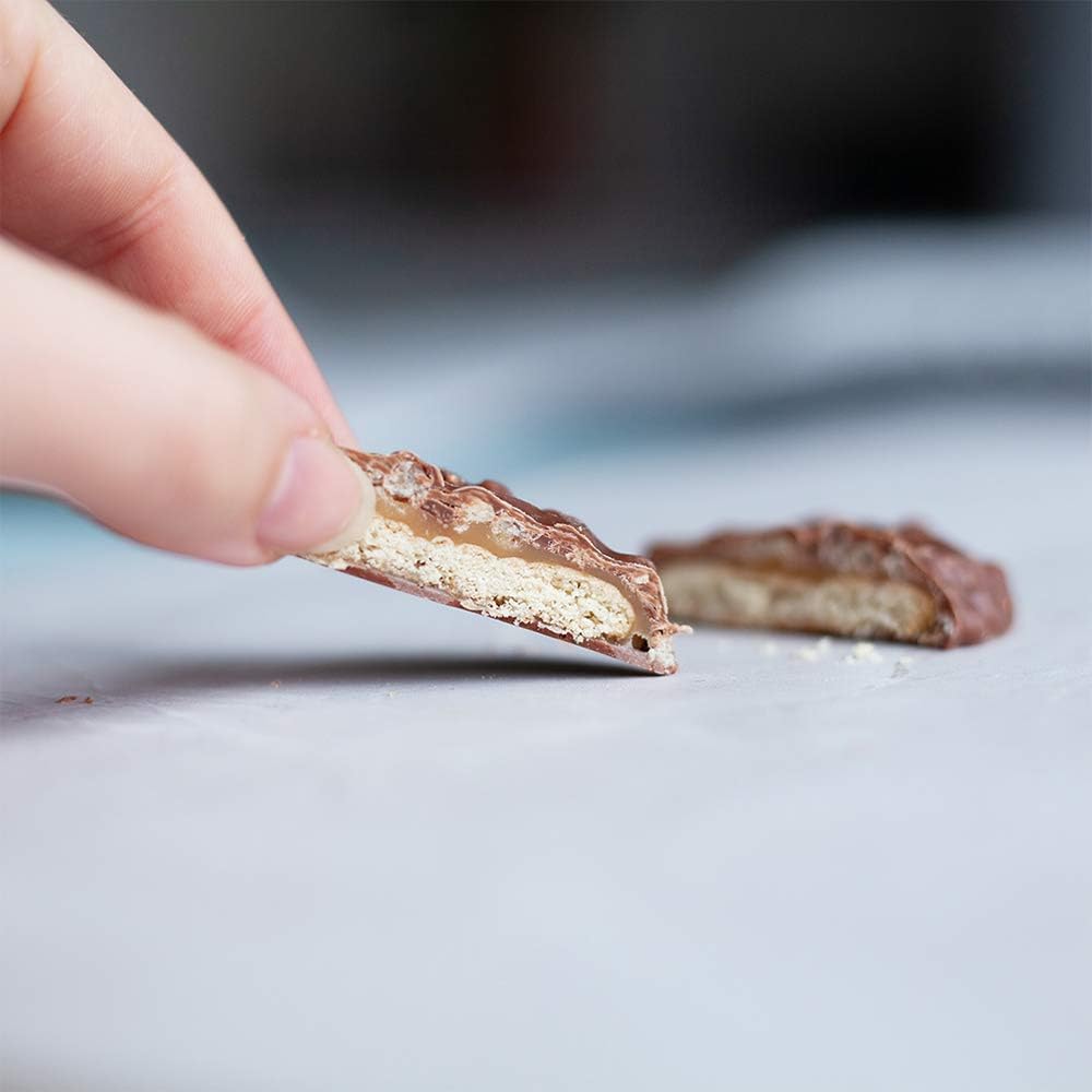 Naughtily nutty (or nuttily naughty), crisp biscuit and chewy caramel are topped with delicious raisins and hazelnuts, then finished with milk chocolate. Perfect over a cuppa.
