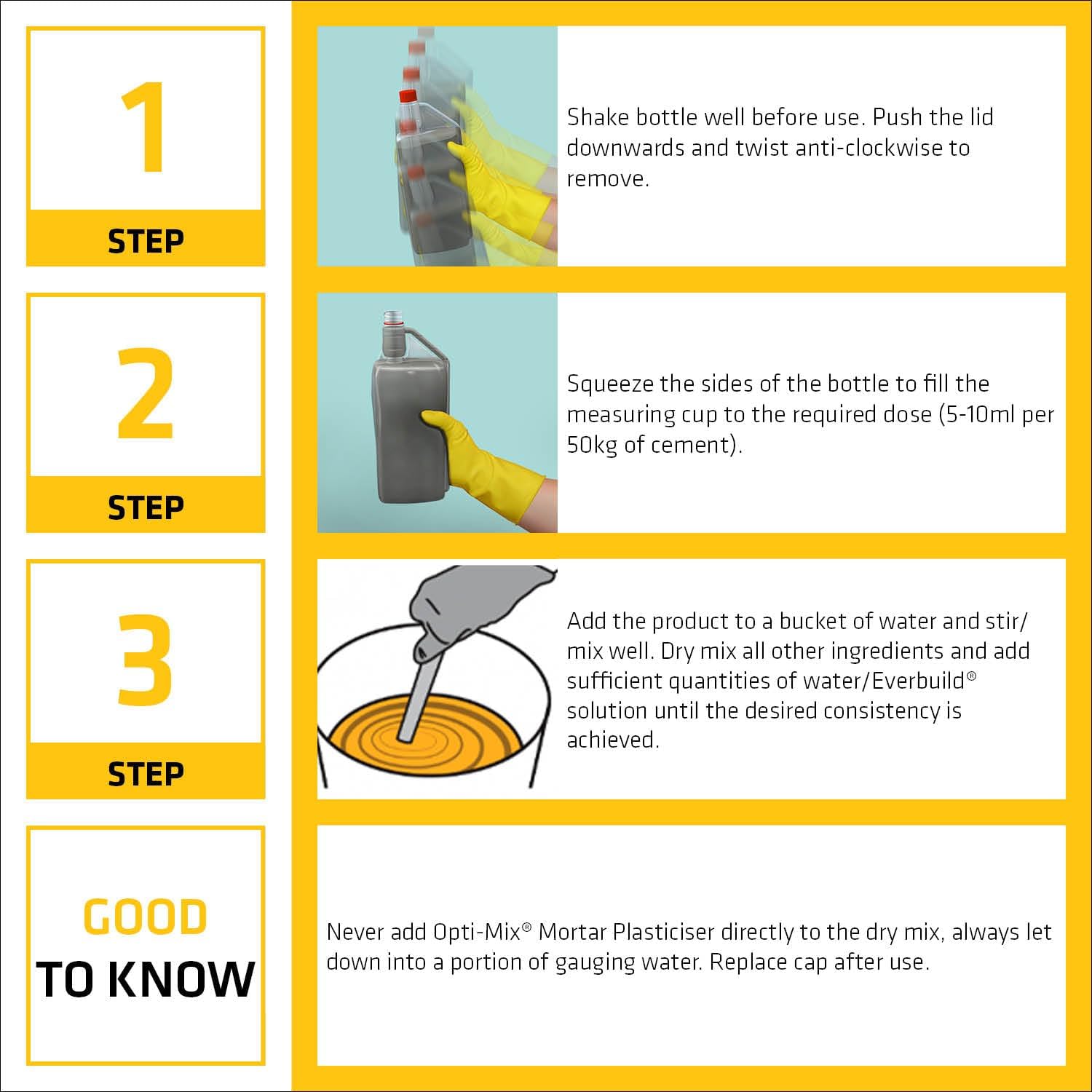 Everbuild Opti-Mix Super Concentrated Mortar Plasticiser | High-Strength | Easy to Use | 1 Litre