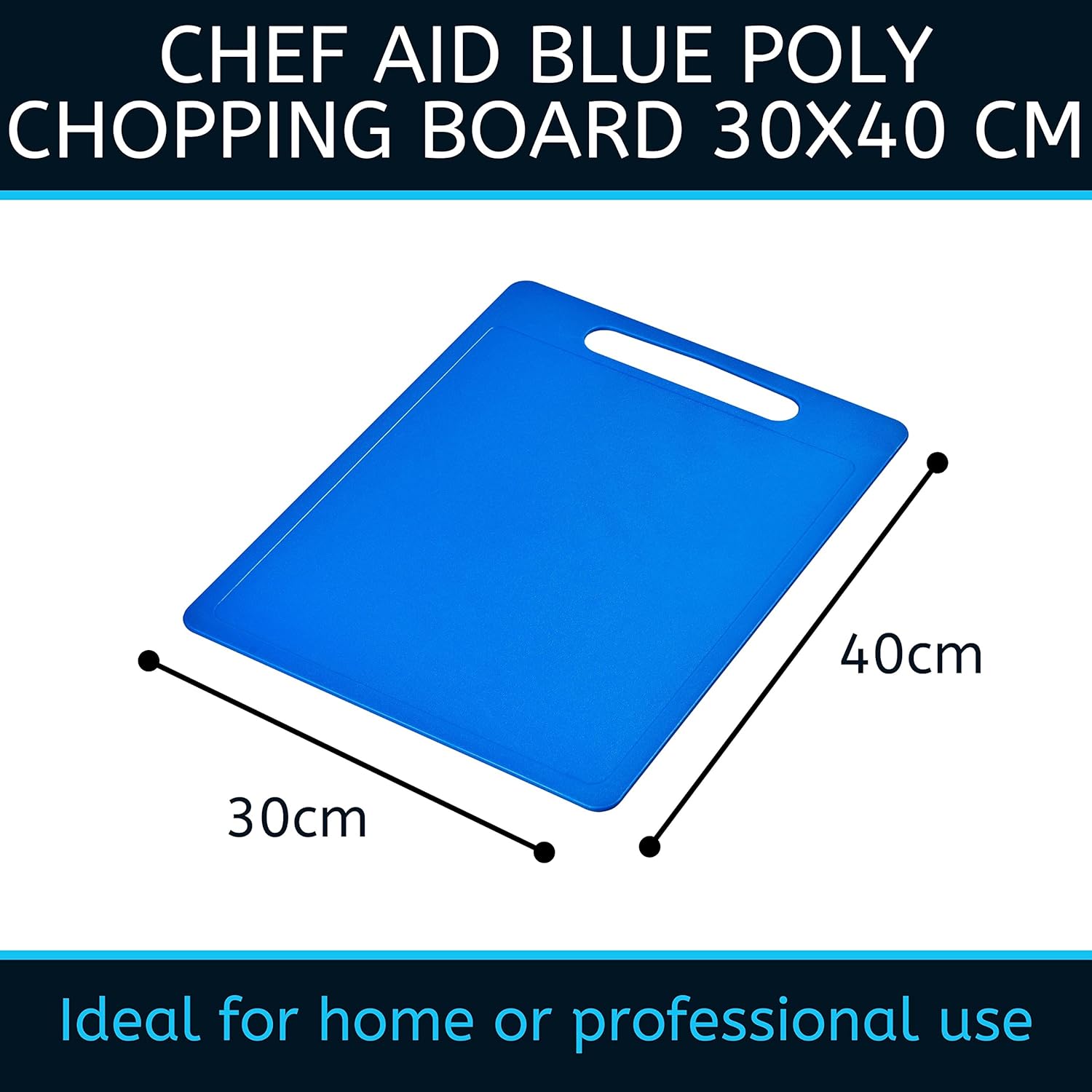 Chef Aid Large Blue Poly Chopping Board, multipurpose anti-slip surface, easy clean and dishwasher safe with handle, measures 40 x 30cm