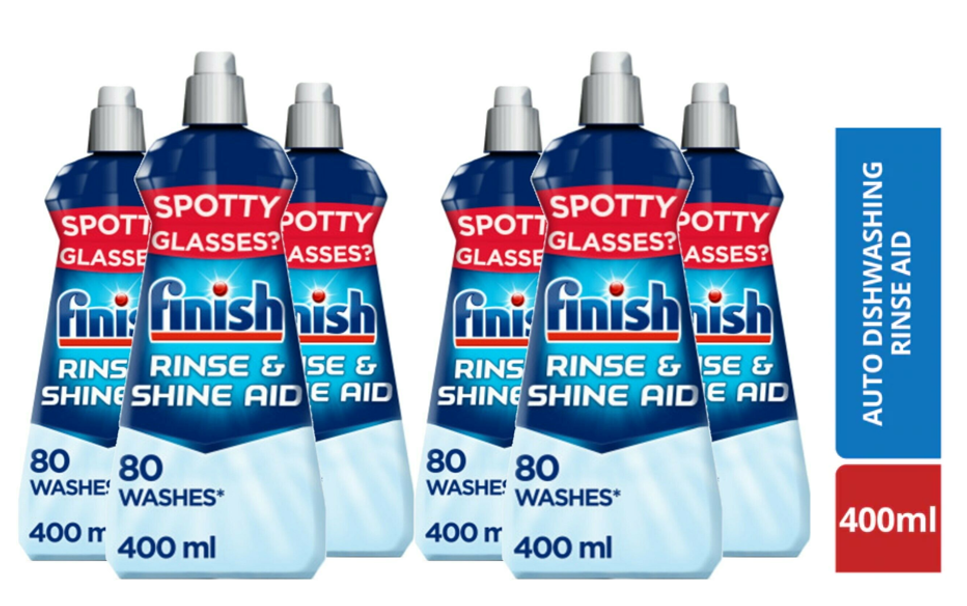 Finish Shine & Dry Rinse Aid helps deliver sparkling dishes and cutlery every time. The rinse aid contains a quick dry formula to provide a clean and shiny finish to your dishes, leaving them sparkling. Finish Rinse Aid works in the rinse cycle to thoroughly remove detergent and food residues that can otherwise leave spots and stains. This pack contains one 400ml bottle.