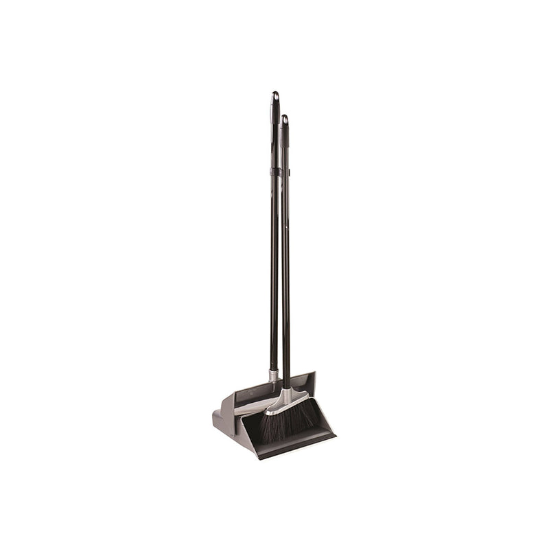 Fixtures Basic Lobby Dustpan and Brush Set,Upright Sweeping Broom and Dust Pan Set Ideal for Home use,Supplied with Grey Plan and Black Handles