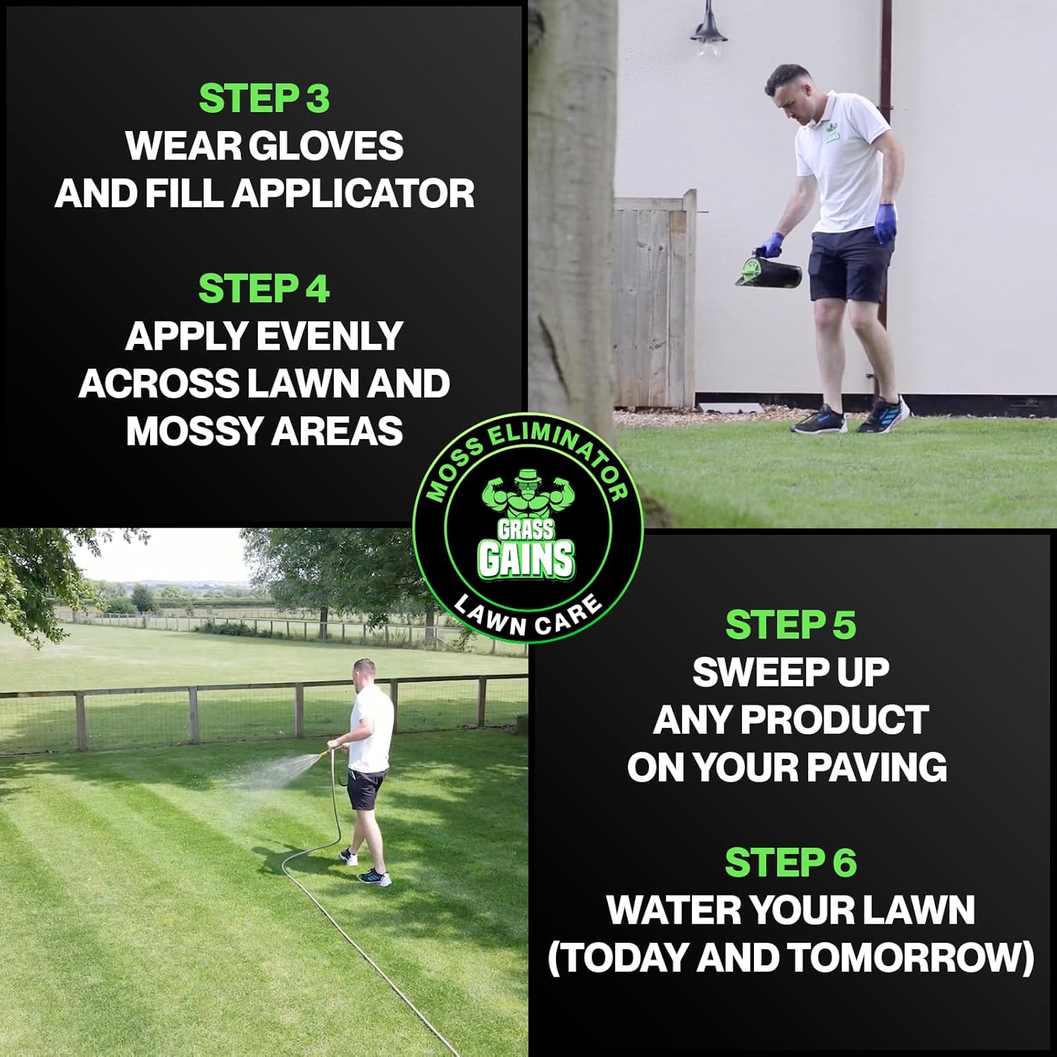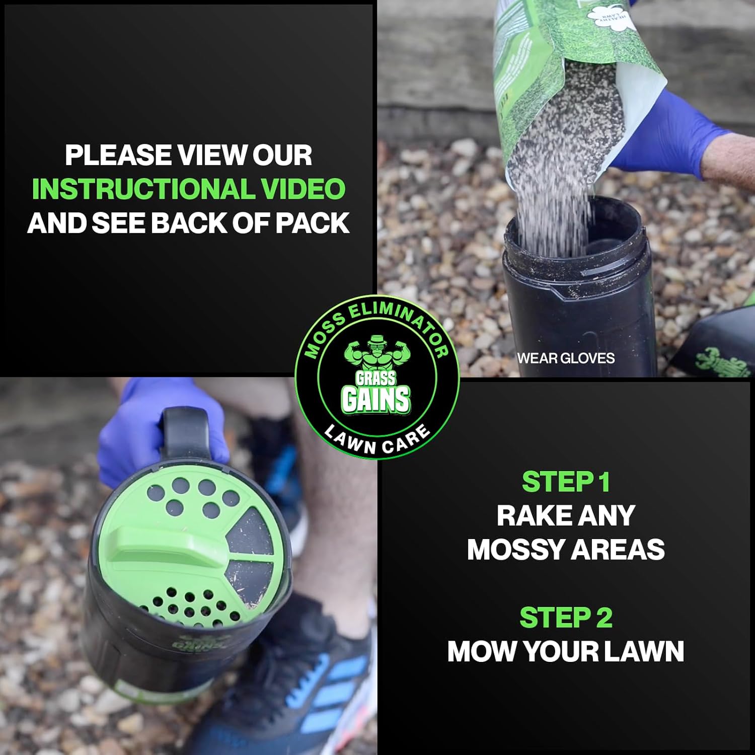 - EASY TO APPLY MOSS TREATMENT FOR LAWNS - First mow your lawn, then simply apply the moss remover granules with a push spreader or Grass Gains hand held applicator. Water your lawn to activate the organic lawn treatment process. Treats up to 50m2