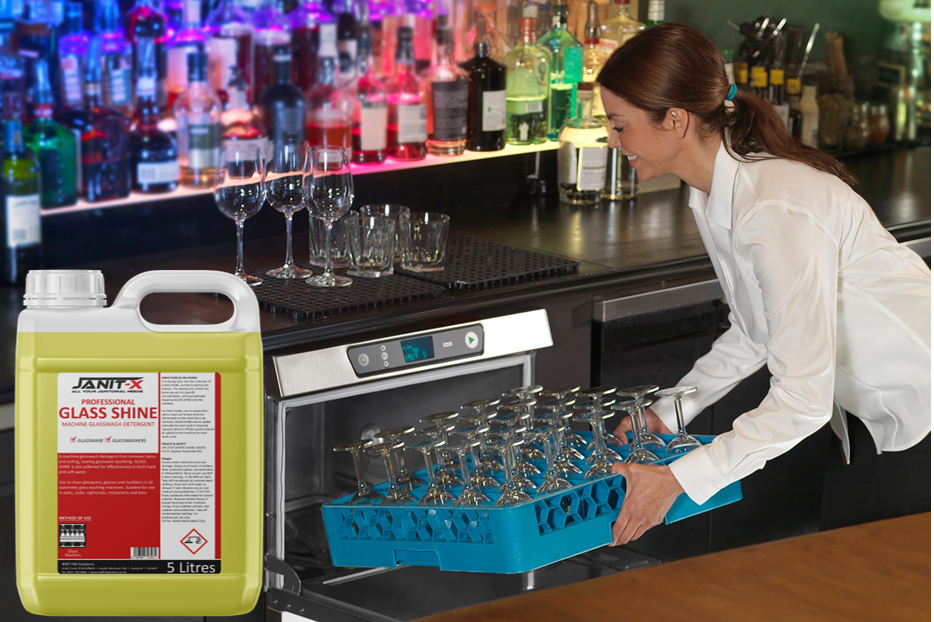 A machine glasswash detergent that removes stains and soiling, leaving glassware sparkling. GLASS SHINE is pre-softened for effectiveness in both hard and soft water.
