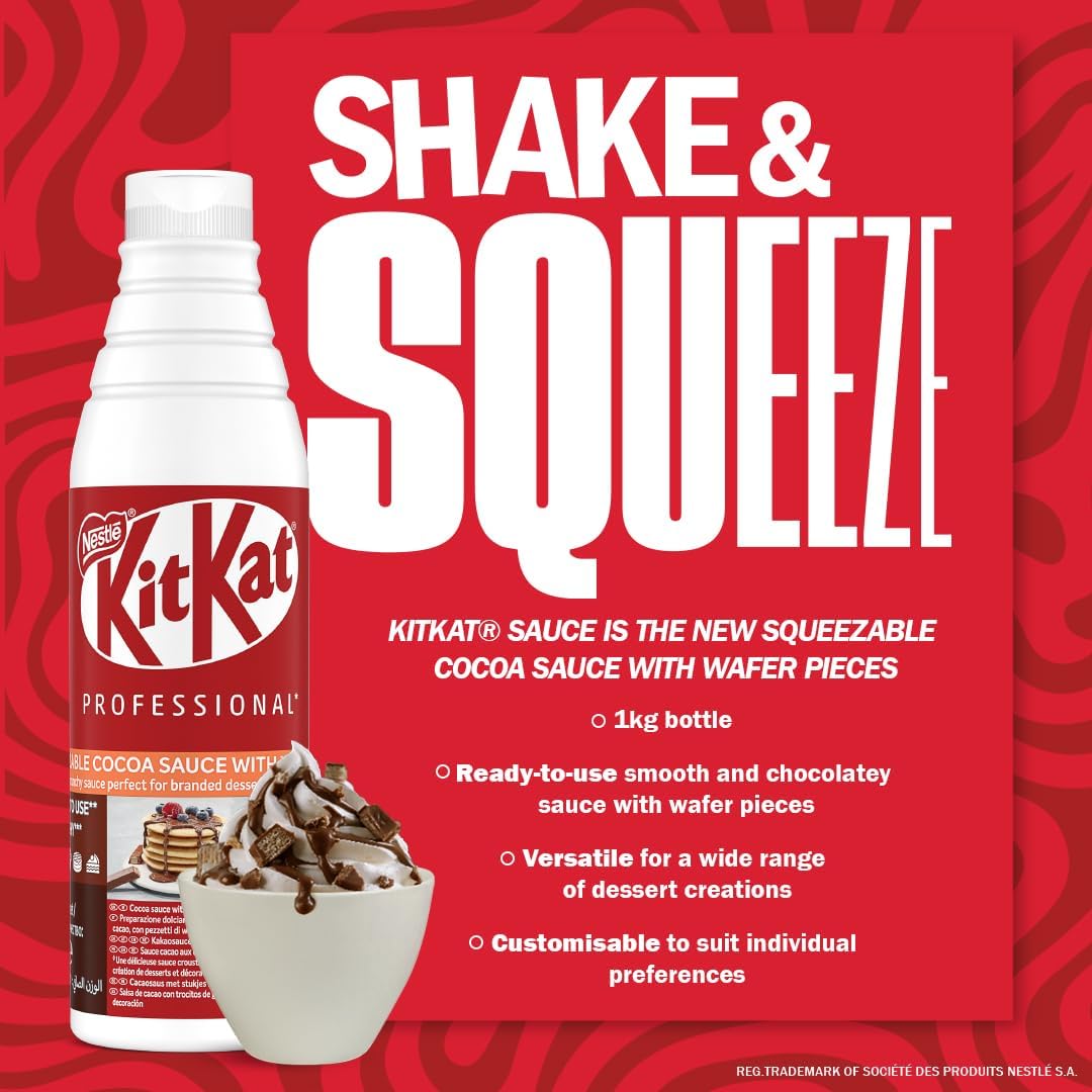 KITKAT Sauce can be used as a topping across so many applications. KITKAT Sauce is the delicious, crunchy layering option for cakes, muffins and sweet treat recipes.