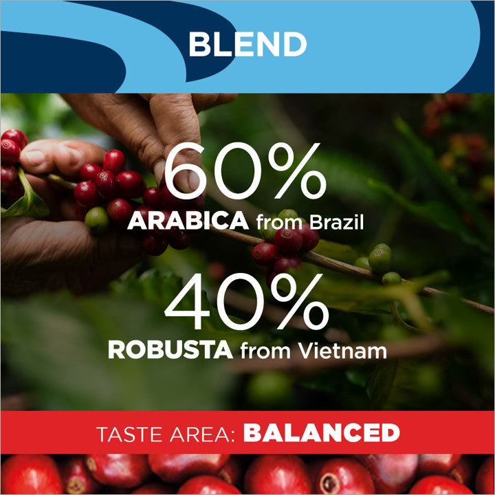 A mild and well rounded, full bodied blend with a velvety crema. A selection of the best coffees to give you a decaffeinated espresso with an intense and persistent taste in an ESE ( Easy Serve Espresso) format.