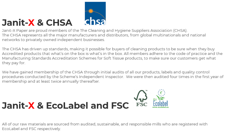 Janit-X Paper Manufacturers are proud members of the The Cleaning and Hygiene Suppliers Association (CHSA).