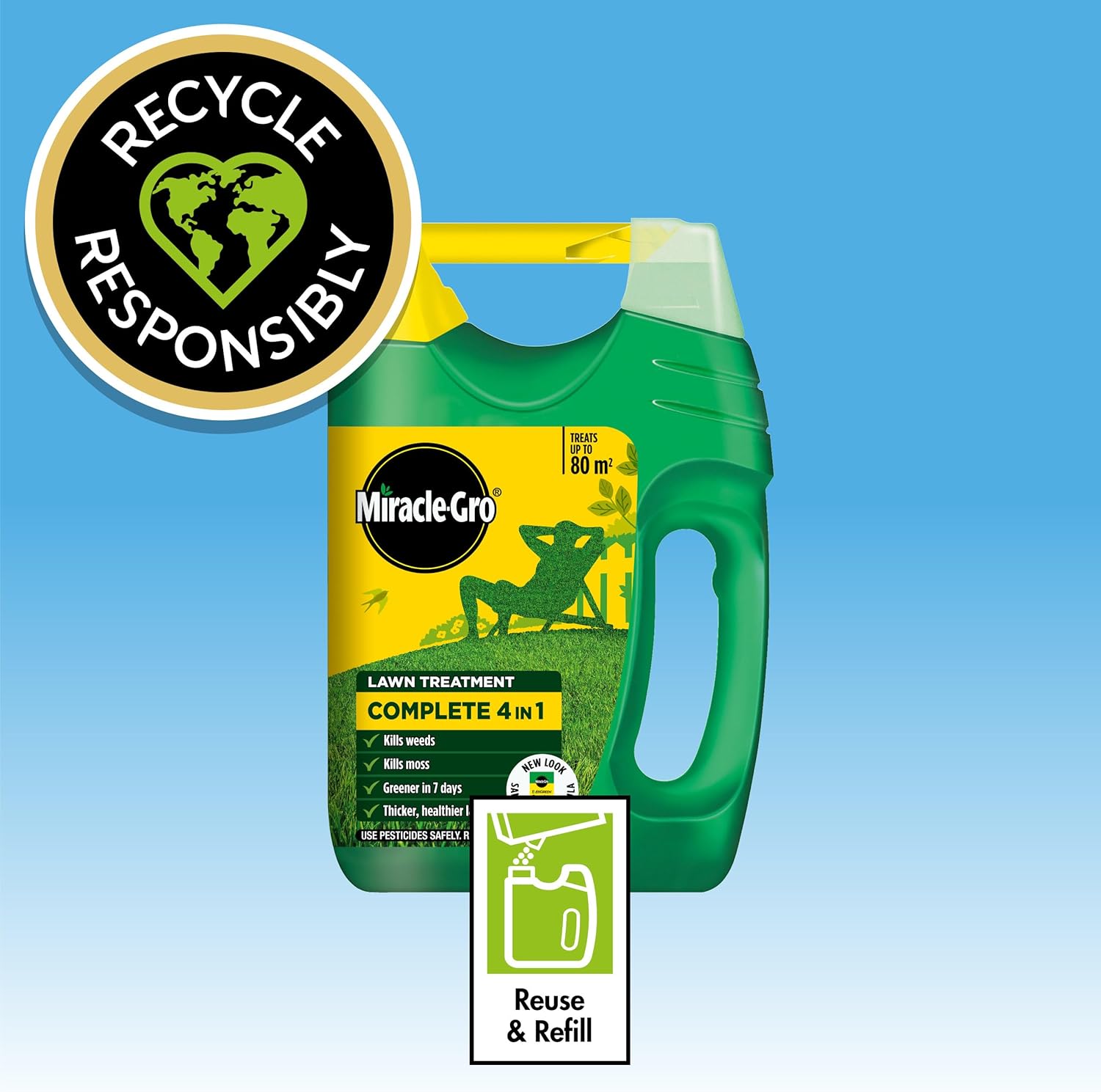Miracle-Gro® EverGreen® Complete 4 in 1 feeds your lawn whilst also working to kill weeds and control moss.