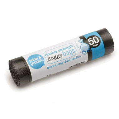 50 Doggy Waste Poo Bags by Pride and Groom. These extra-large double strength doggy waste bags have a tie handle.
