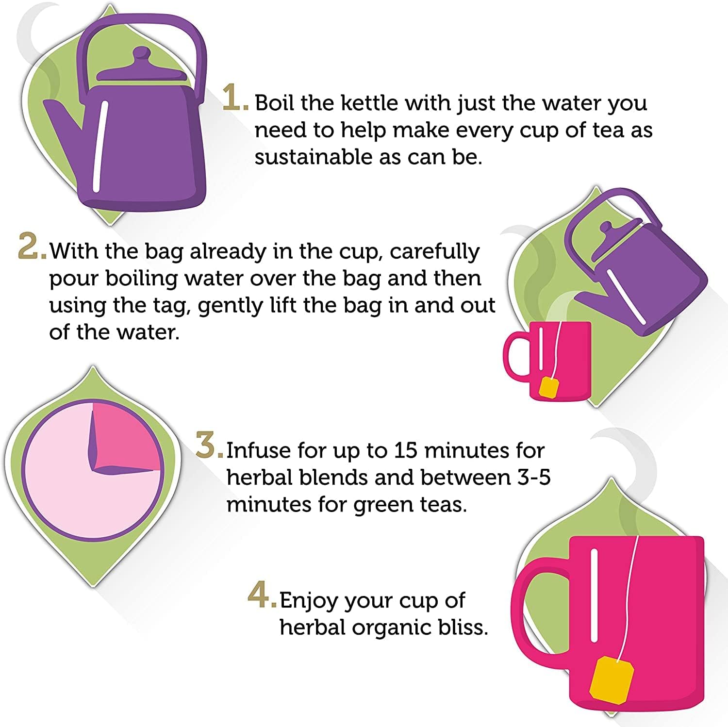 Infuse the tea bag for at least 5 minutes in freshly boiled water.