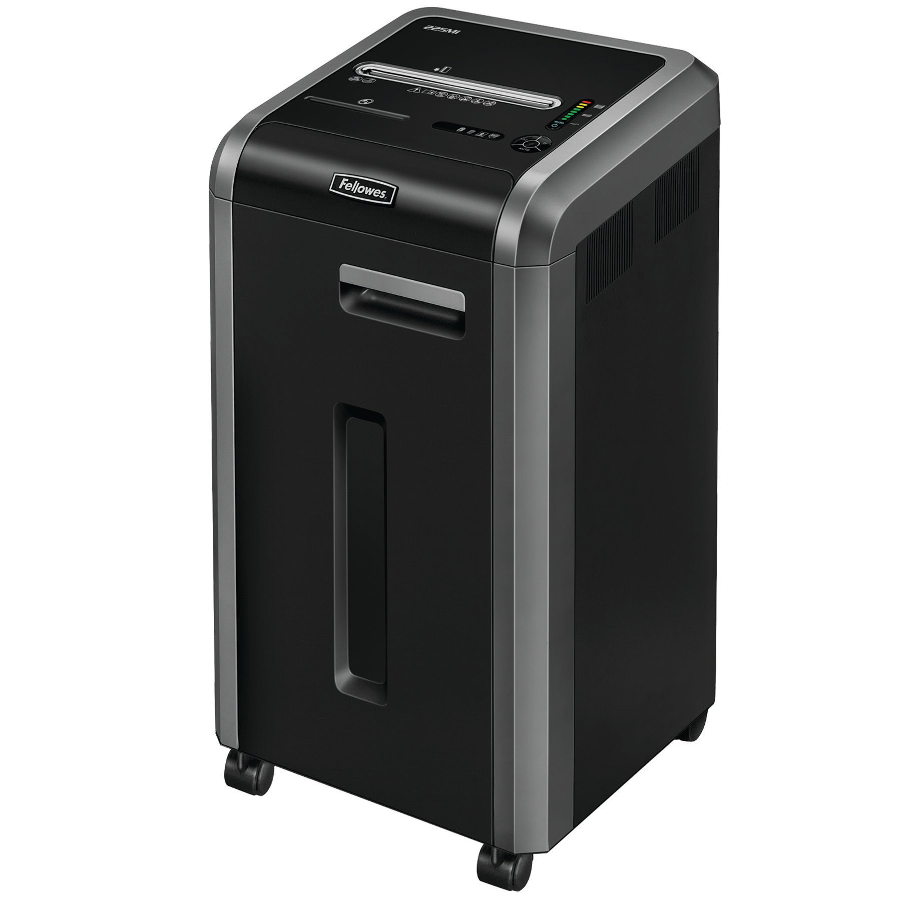 Ideal for office environments of 5+ users. The Fellowes 225Mi features shredding up to 15-sheets per pass. Security level P-5 (2x12mm) micro cut pieces with 60 litre bin capacity. Equipped with Silent Shred® Technology minimises noise disruption in shared work spaces. Safesense® Technology offers greater peace of mind in home environments and Sleep Mode automatically powers down the shredder after periods of inactivity.