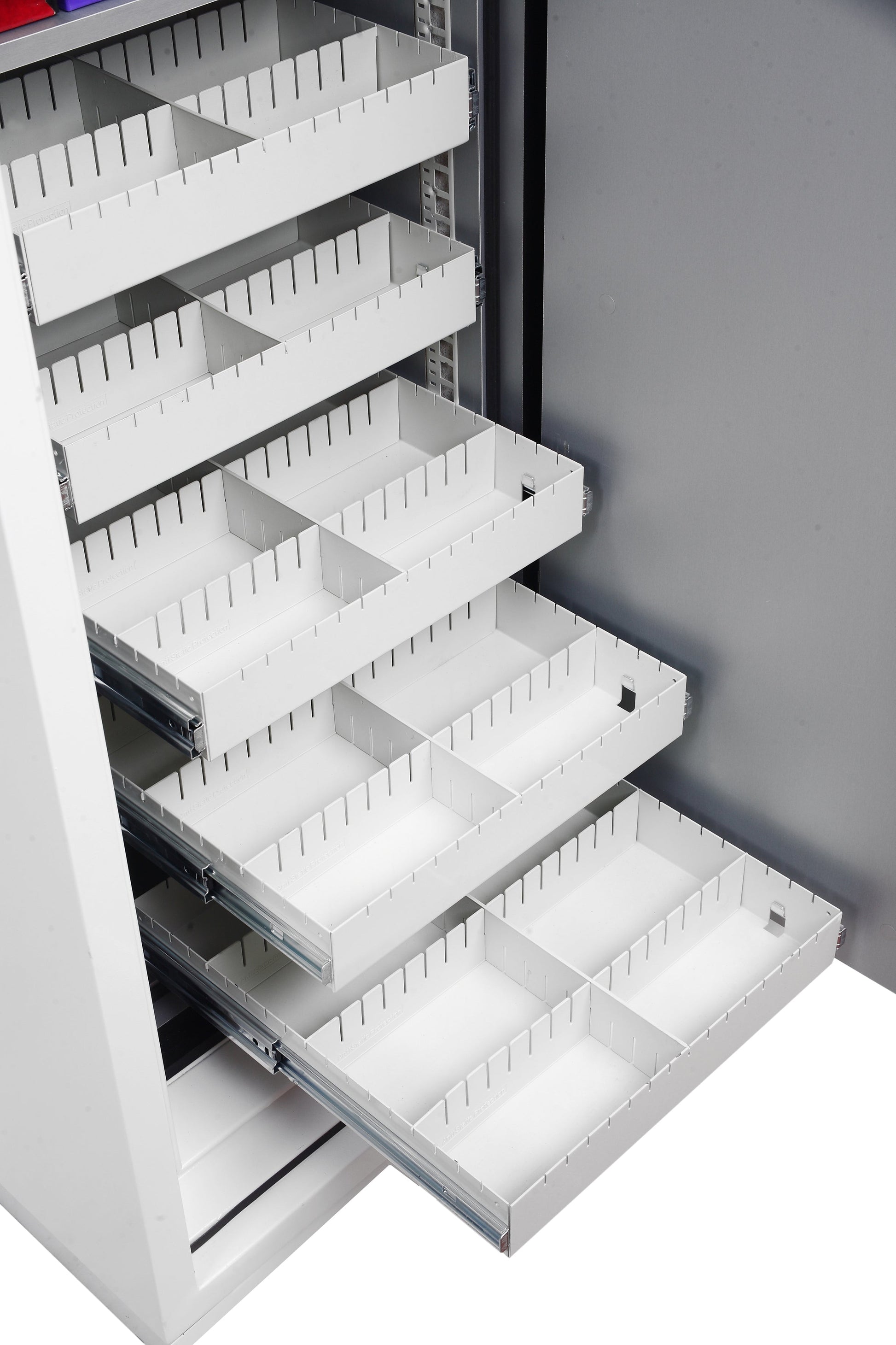 - • FITTINGS – Each unit comes complete with 3 height adjustable shelves and 10 pull out media trays