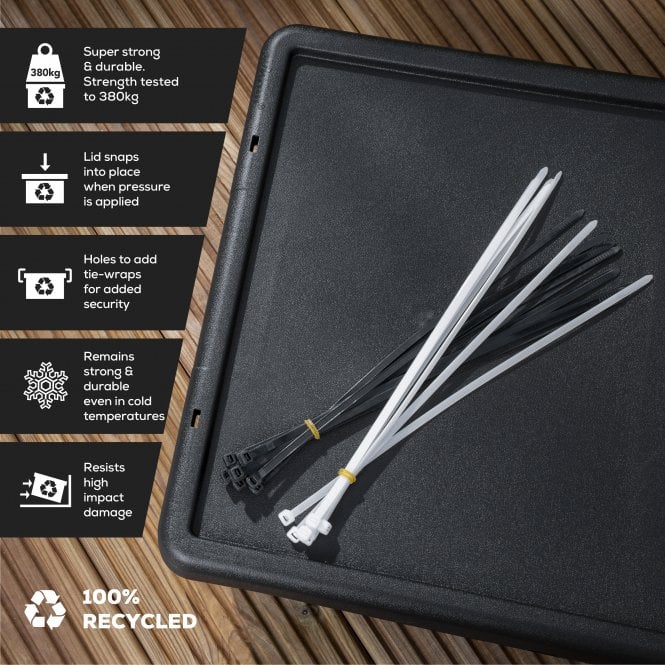 Lid snaps into place and features holes to add tie-wraps for added security.